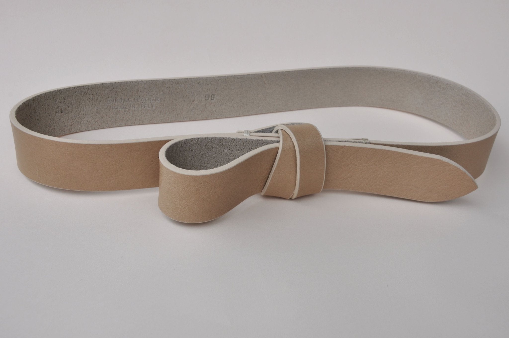 Bindegürtel aus glattem italienischen Rindsleder in der Farbe taupe. Der Ledergürtel lässt sich stufenlos in der Größe verstellen und besticht durch das tolle Material und die Geradlinigkeit. Das Ende des Gürtels wird einfach umgeschlagen und in die Schlaufe gesteckt.