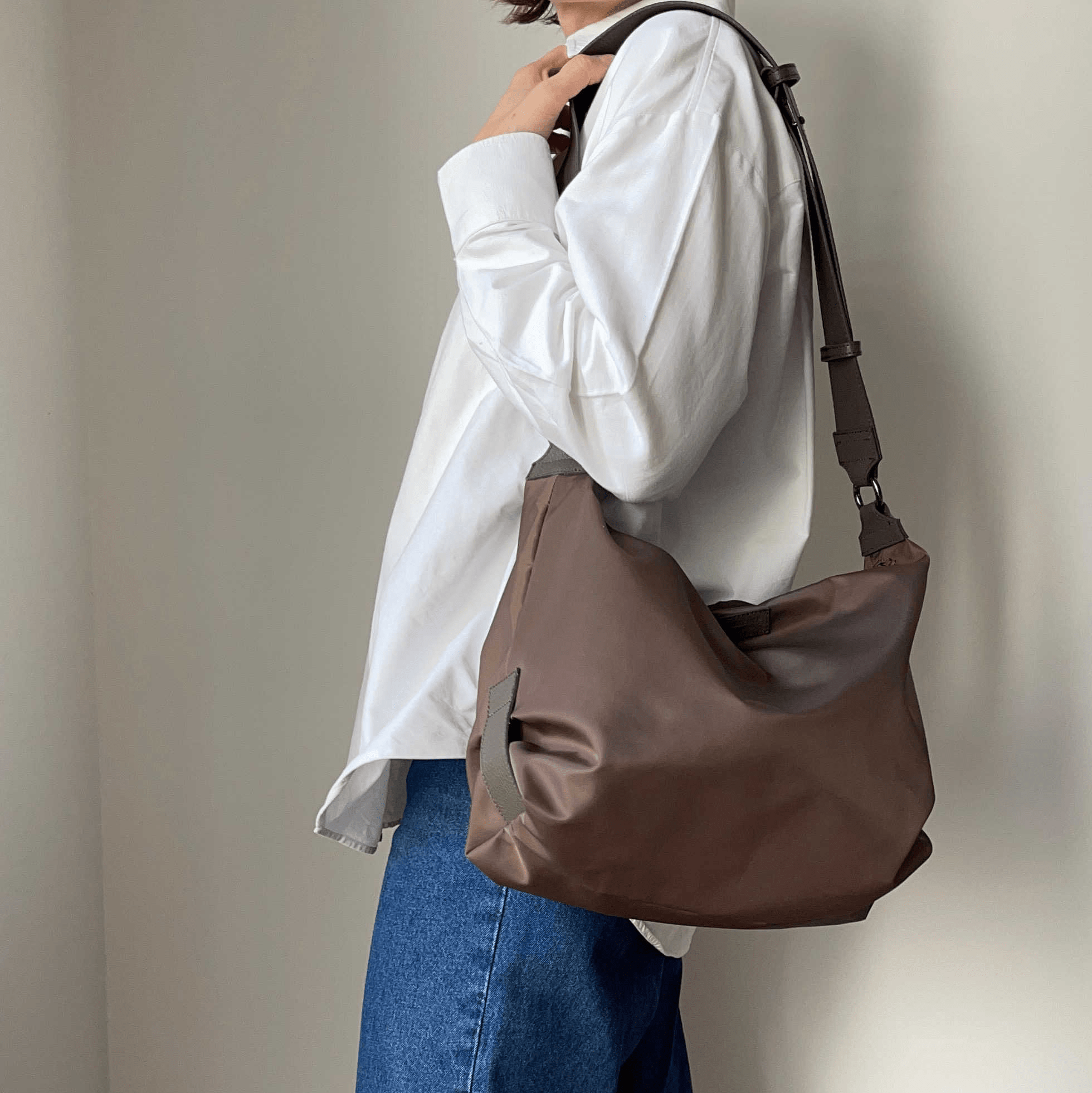 Das Material, der hochwertige Nylonstoff, macht die CLOUD BAG zum perfekten Alltagsbegleiter: pflegeleicht und kaum Eigengewicht.