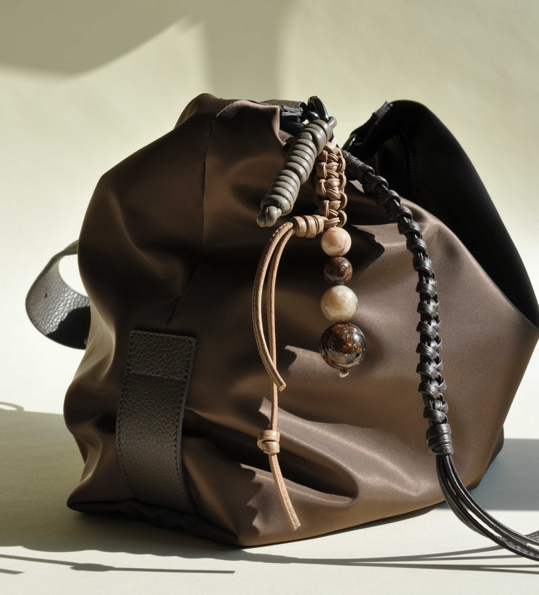 The BAG CHARM - tassel consists of three braided elements made of nappa leather and acrylic beads. The individual charms are detachable.