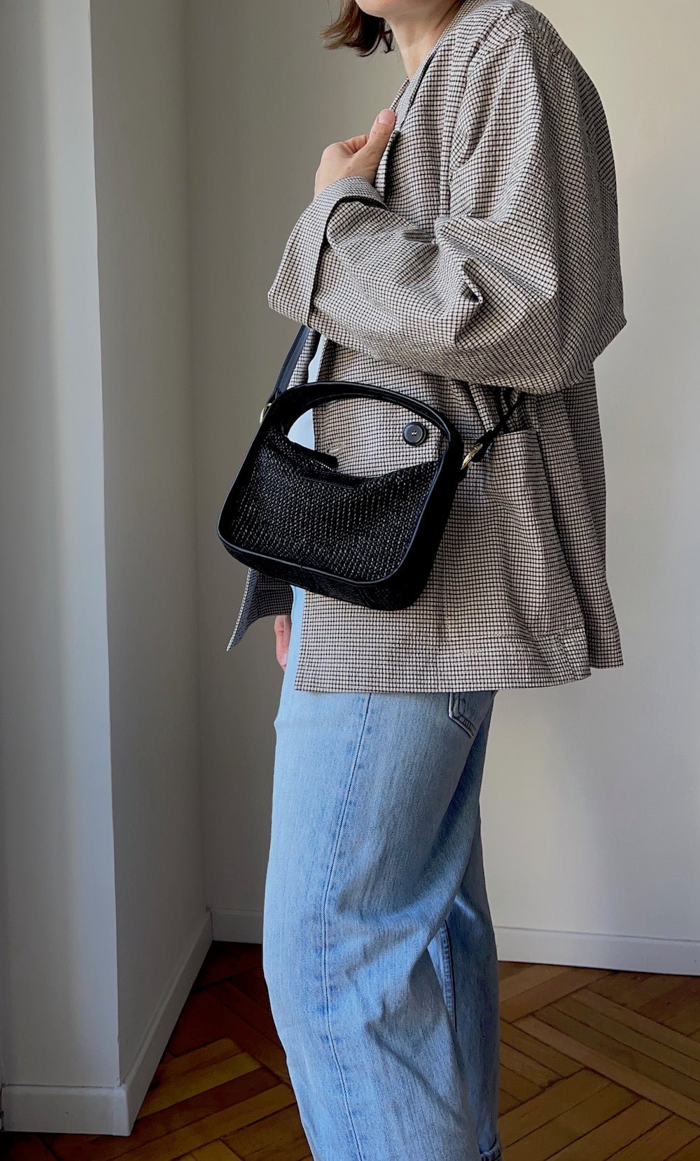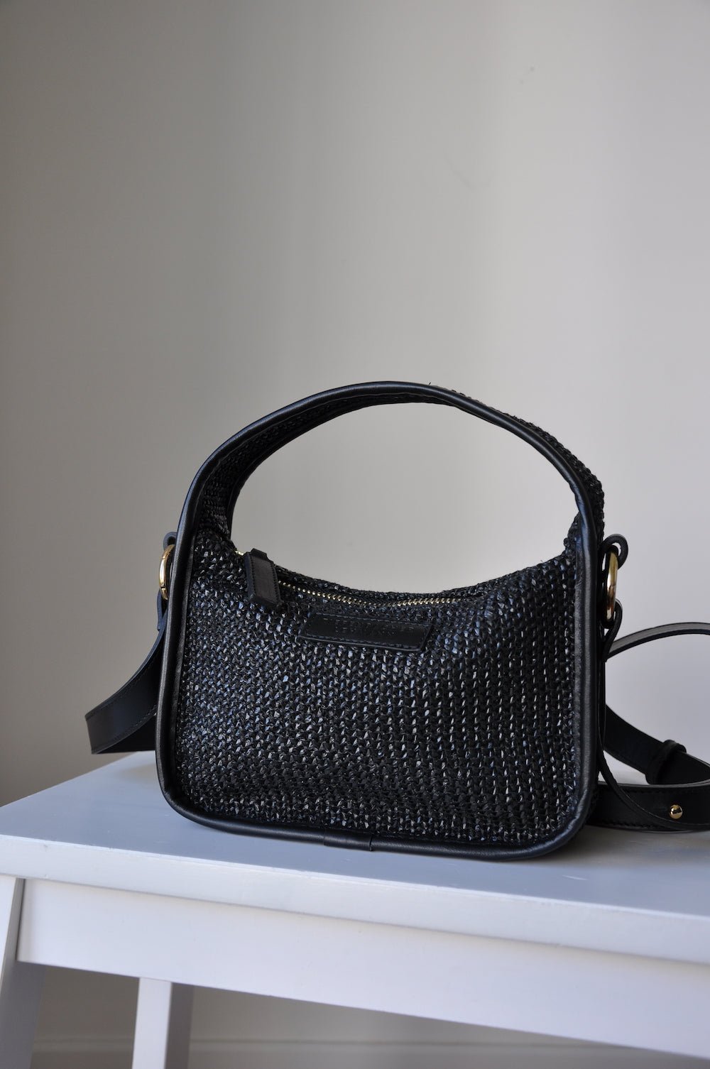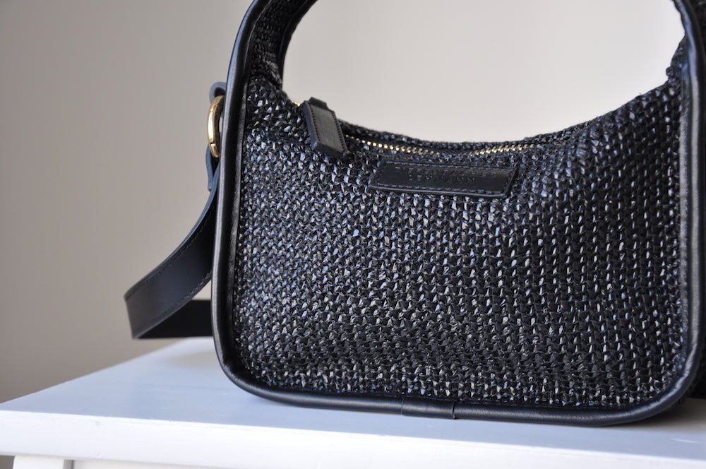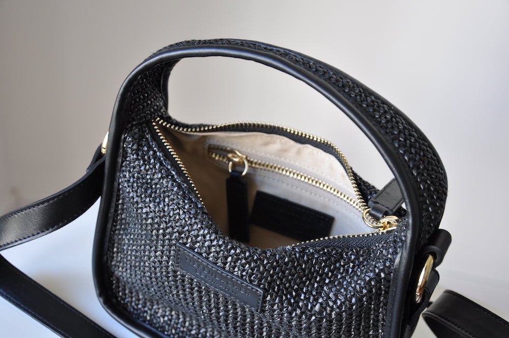 BRIOCHE BAG mini black raffia - light gold